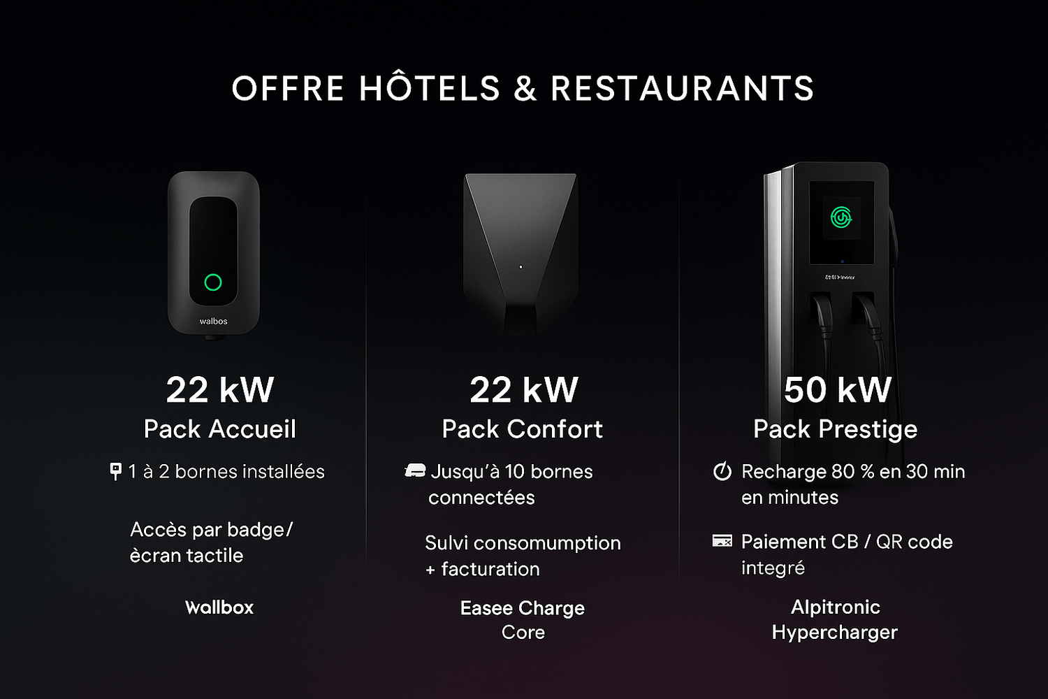 Vous attirez une nouvelle clientèle de conducteurs de véhicules électriques, vous augmentez leur temps de présence sur place et vous valorisez l’image écoresponsable de votre établissement.