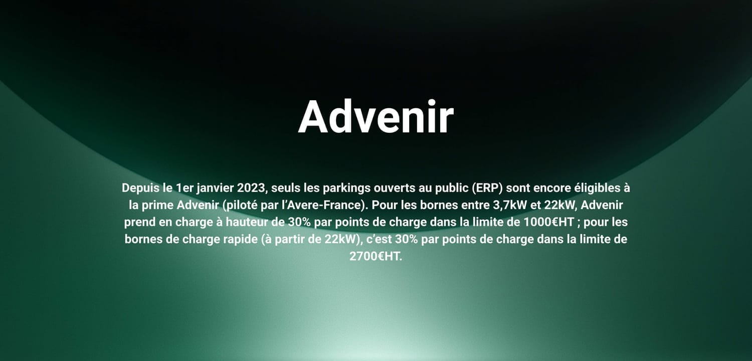 Le programme Advenir peut prendre en charge jusqu’à 50 % du coût d’installation. D’autres subventions existent selon les collectivités locales et les profils (particuliers, entreprises, copropriétés).